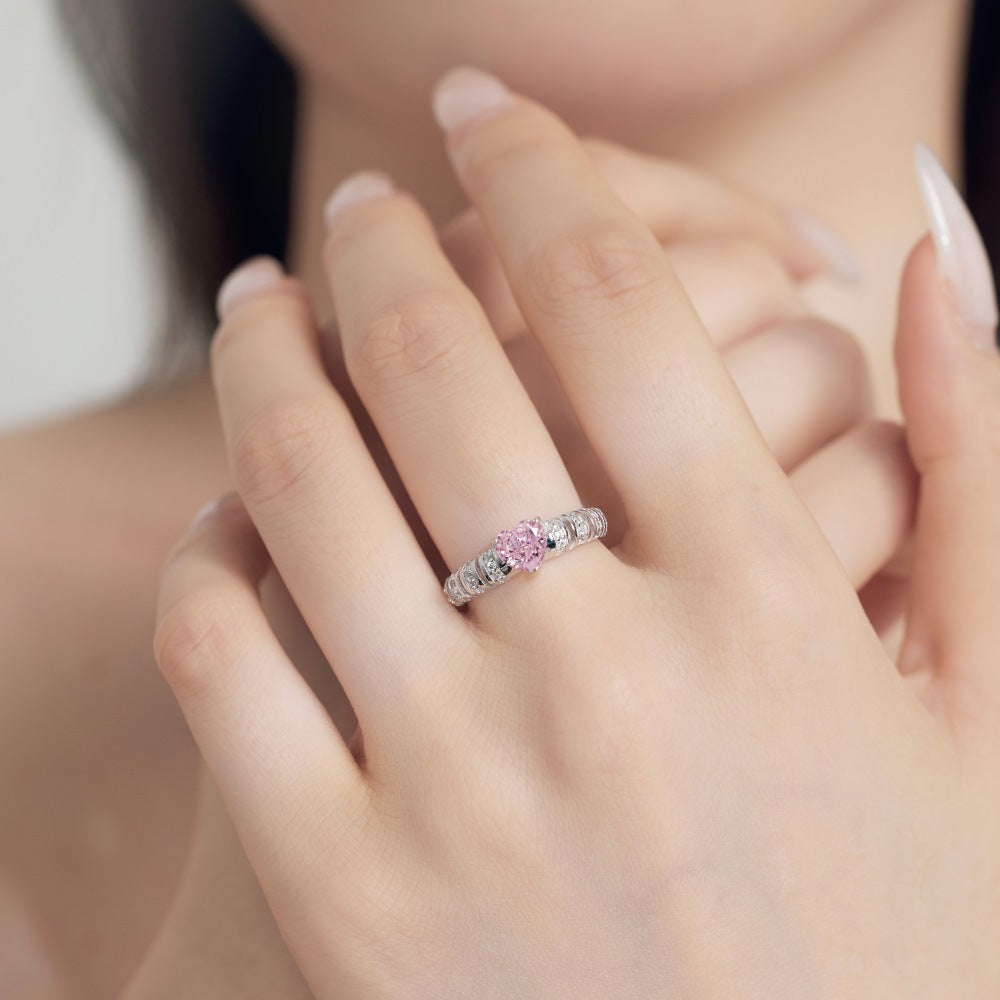 S925 Silver Heart-shaped Hollow Ring with Ice Flower Cut Zircon