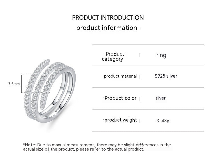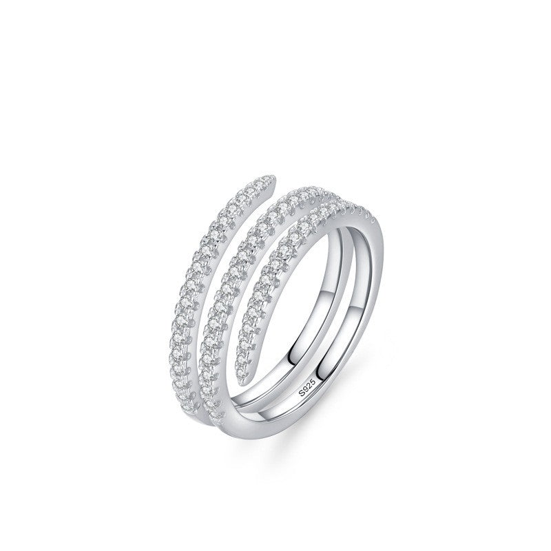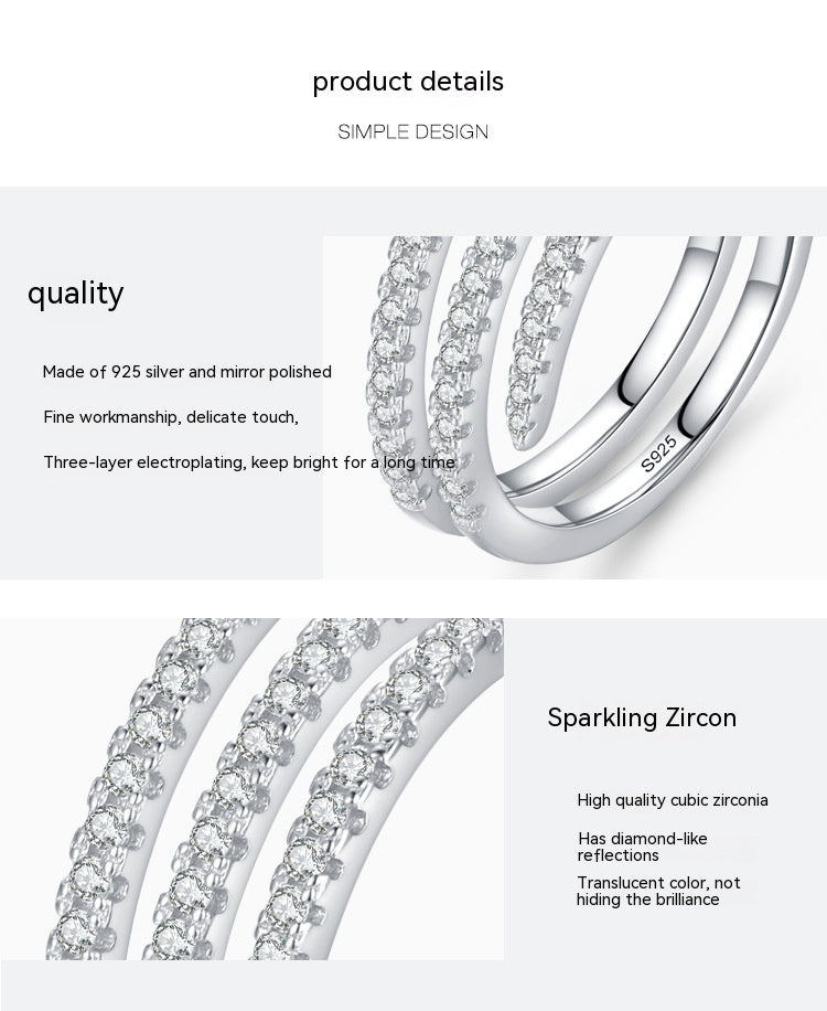 S925 Sterling Silver Double Layer Rhinestone Ring
