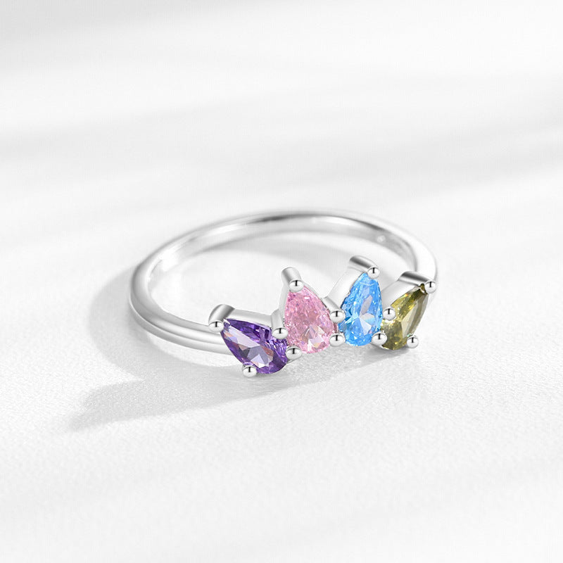 S925 Sterling Silver Drop-shaped Colored Zircon Ring
